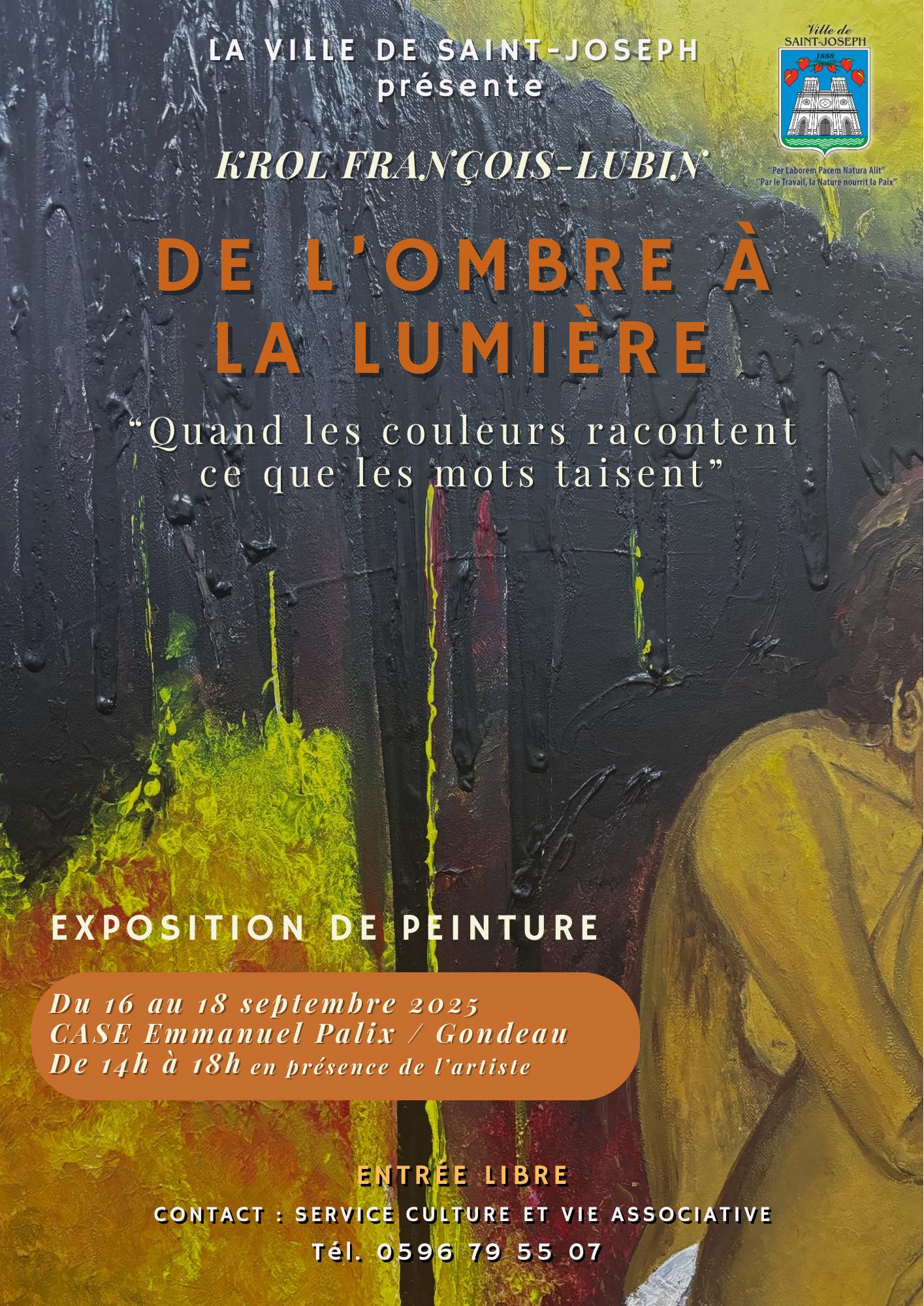 Exposition de peinture à Saint-Joseph La Ville de Saint-Joseph vous invite à découvrir l’univers de Krol François-Lubin à travers son exposition « De l’ombre à la lumière » . Quand les couleurs racontent ce que les mots taisent... Du 16 au 18 septembre 2025 CASE Emmanuel Palix De 14h à 18h, en présence de l’artiste Entrée libreUn rendez-vous artistique et sensible, à […]