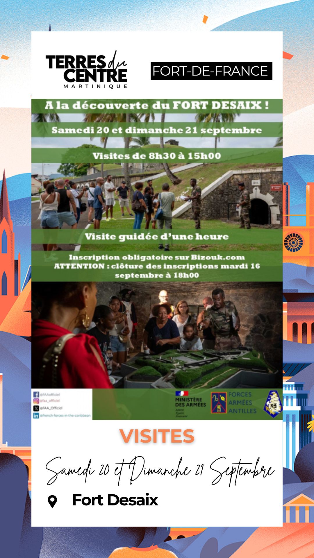 La Préfecture de la Martinique vous ouvre ses portes Samedi 20 septembre 2025 – 09:00 ⤏ 12:00, 14:00 ⤏ 16:00 | dimanche 21 septembre 2025 – 09:00 ⤏ 13:00 |Préfecture de la Martinique rue Victor Sévère Fort-de-France Venez découvrir ou redécouvrir ce site emblématique au cours d’un week-end dédié au patrimoine architectural Réservez vite votre visite – Inscription obligatoire Tel +596 596 […]