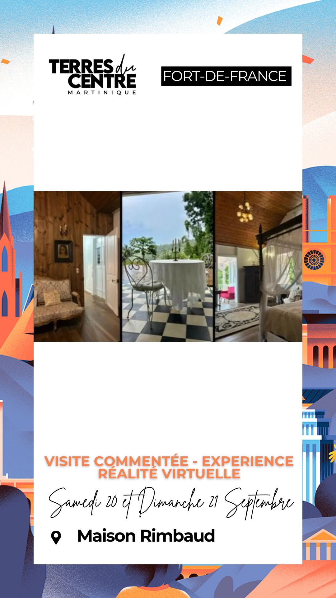 Maison Rimbaud Samedi 20 septembre 2025 – 10:00 ⤏ 17:00 | Dimanche 21 septembre 2025 – 10:00 ⤏ 17:00 | 10 km Route de Balata Fort de France Visite commentée gratuite Expérience Immersion dans le passé, « an tan Robé », grâce à la réalité virtuelle. Venez vous assoir aux côtés d’Emmanuel RIMBAUD pour préparer la grande manifestation du 24 juin […]