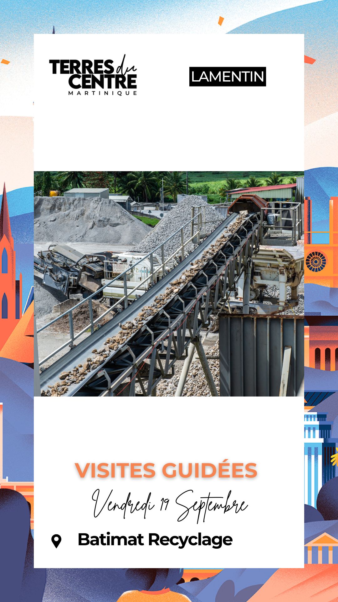 Visite de Batimat Recyclage Vendredi 19 septembre 2025 – 08:00 ⤏ 11:30 | Le Lamentin Visite guidée de la seule entreprise de recyclage du béton issu des déchets du BTP et des invendus du béton brut en Martinique. +596 696 43 16 77
